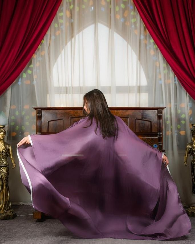 Fabric: Shiny organza , with a very fluid iridescent effect